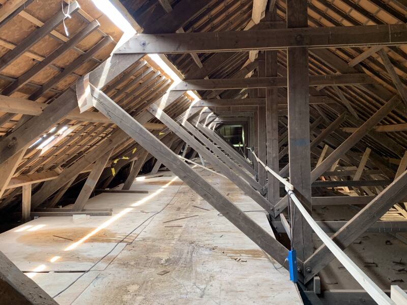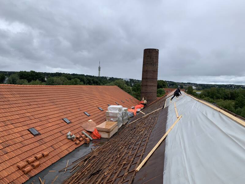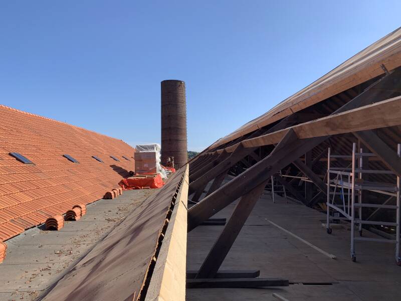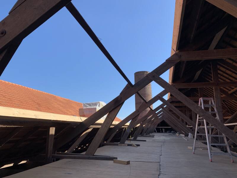 Zomer 2022: Bestaande dakpannen zijn verwijderd en gaan plaats maken voor een lichtstraat in combinatie met verrijdbare zonnepanelen.